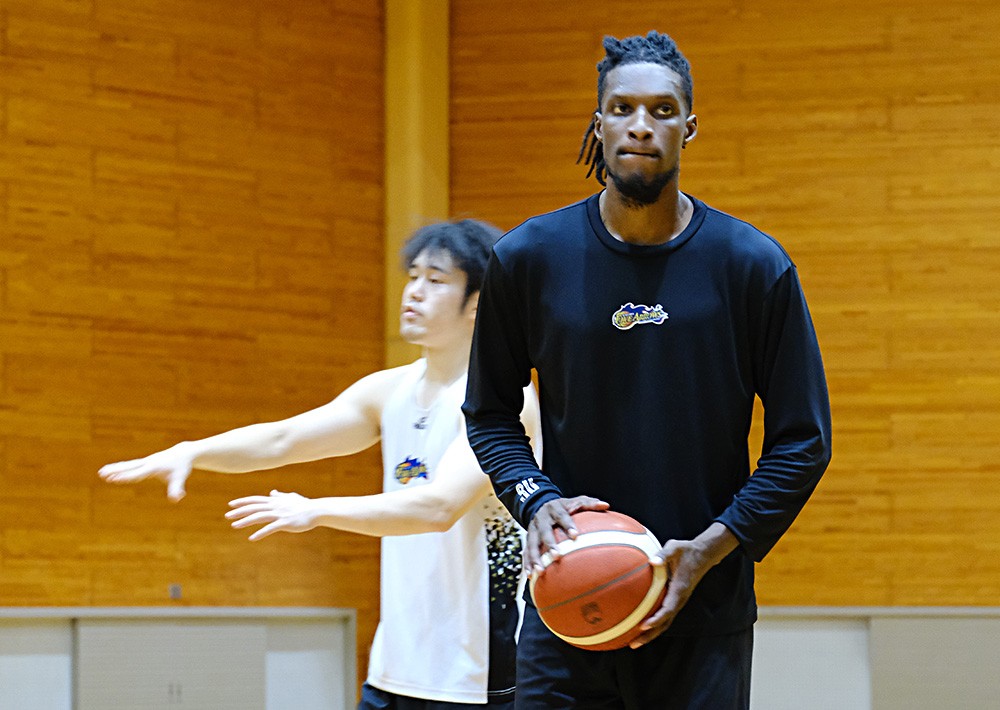 矢代雪次郎選手と共に。信頼できるメンバーと一丸となり、ビッグゲームに勝つ!と心意気を見せます。