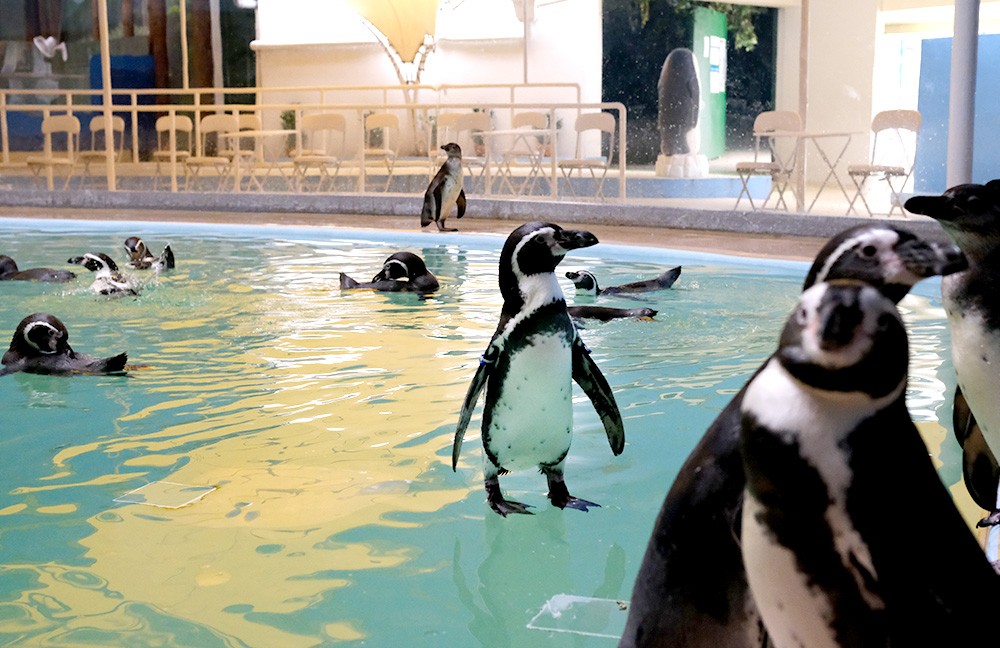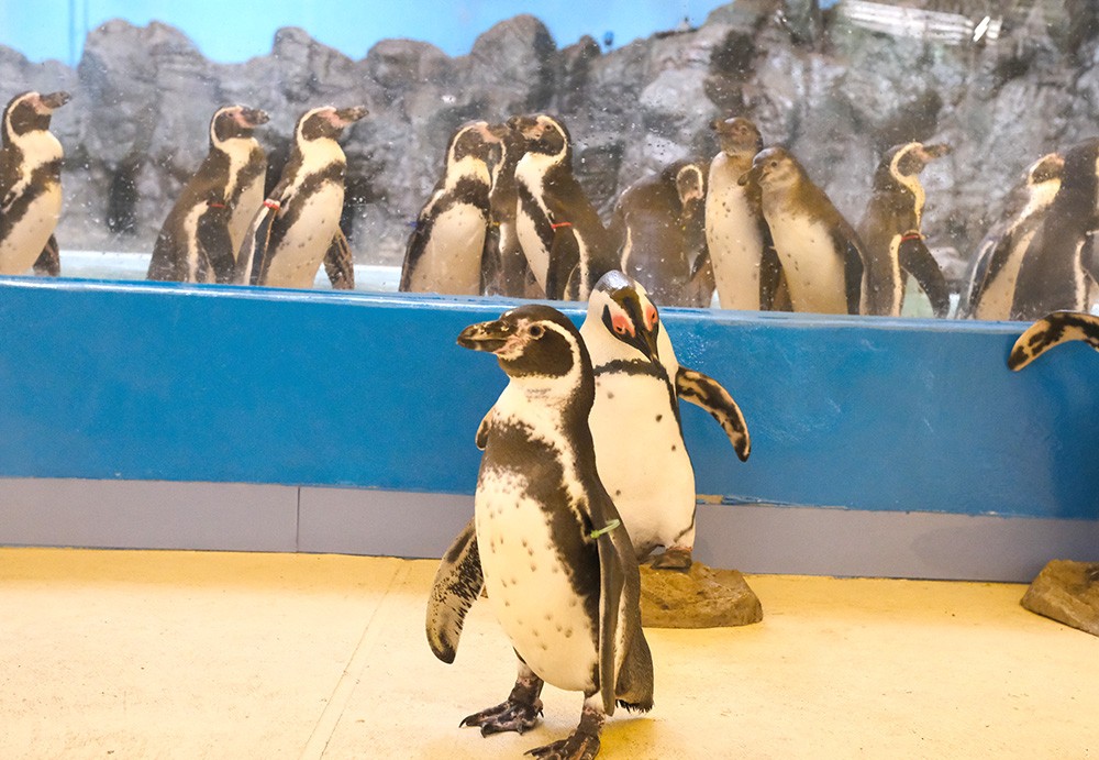 香川県高松市にある新屋島水族館。標高約300mの屋島山上にある、珍しい水族館です。2019年11月にリニューアルされたペンギンの水槽には、3家族20羽のフンボルトペンギンが住んでいます。