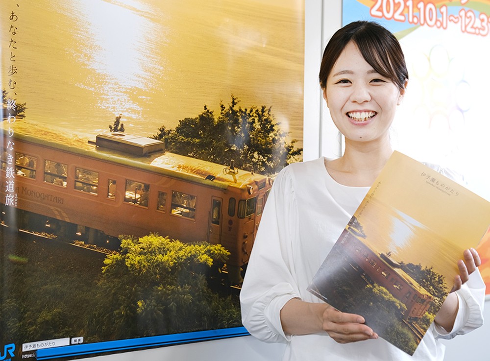 うちわに書かれた「だんだん」とは、南予の方言で「ありがとう」の意味。(提供:JR四国)