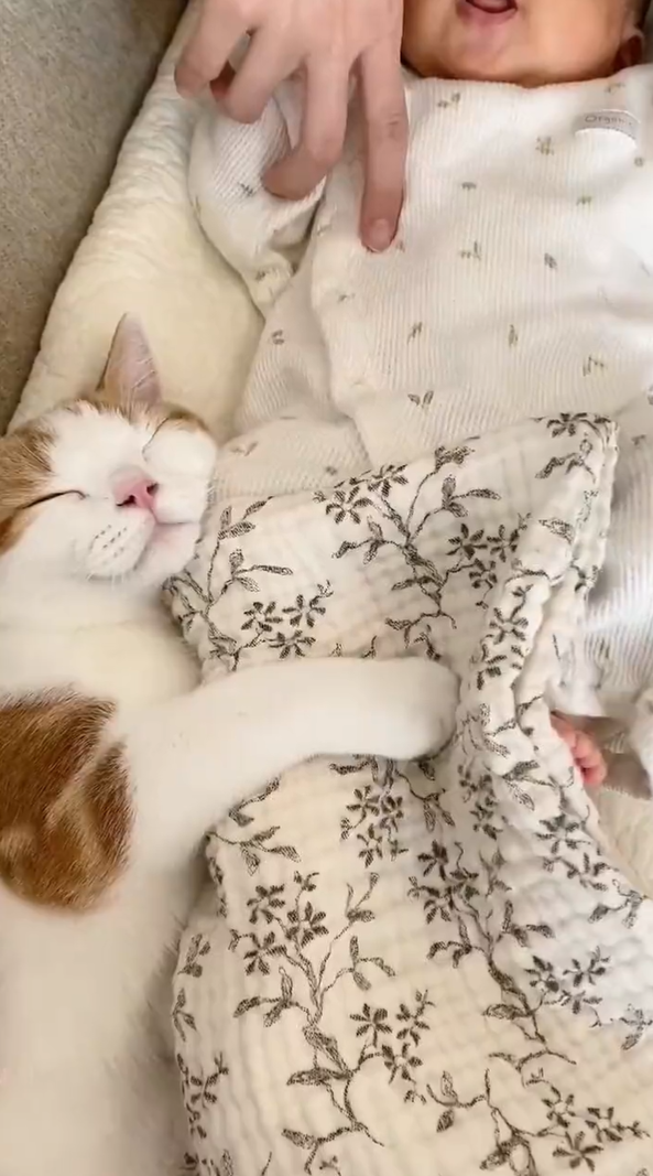 抱っこされる赤ちゃんを引き留めようとするこなつ君(@konatsudayo529さん提供)
