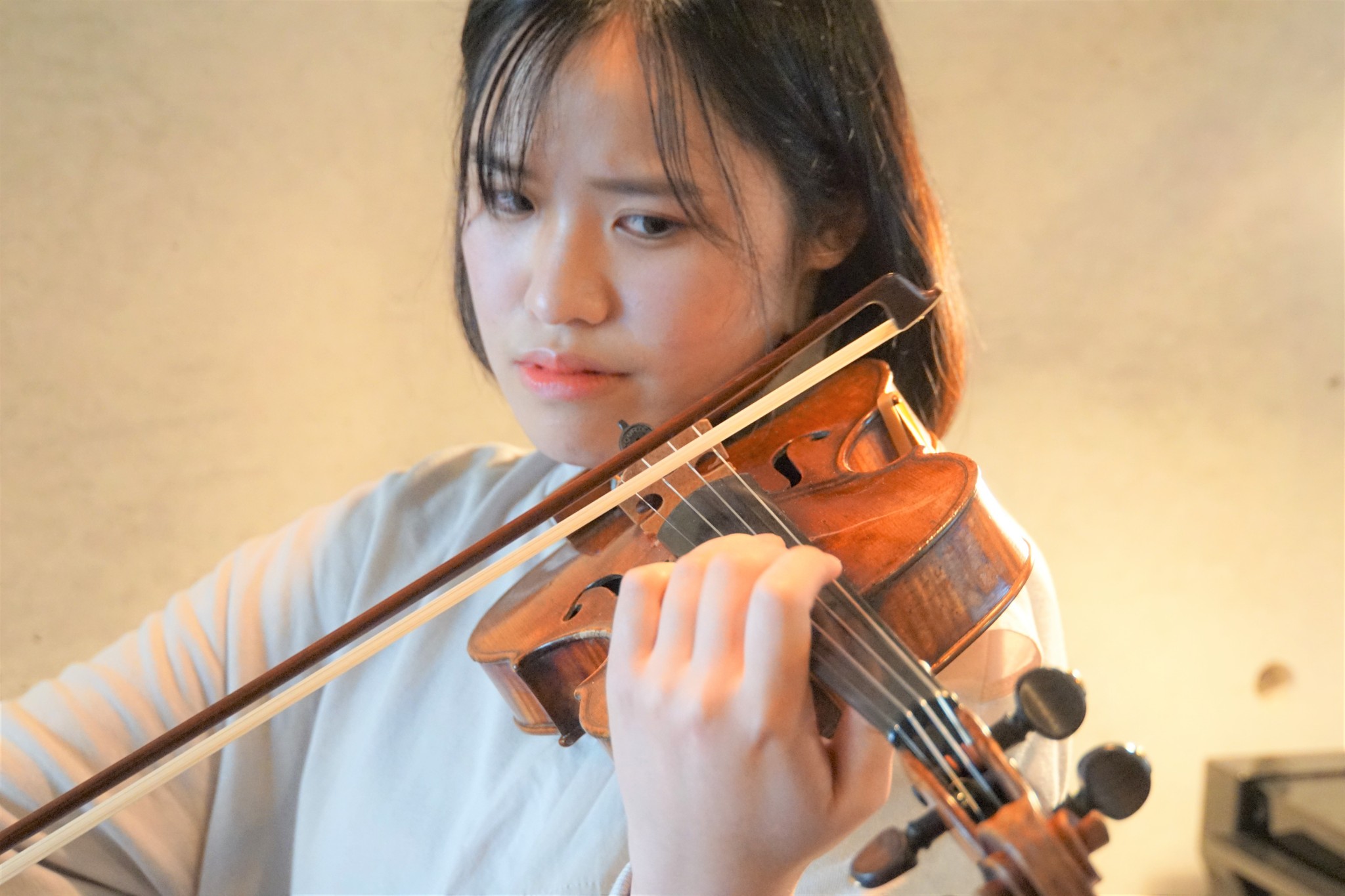 また、秋に行われる芸高の定期演奏会ではコンサートマスターに選ばれており、「務めを果たせるよう、頑張りたい」と話してくれました。