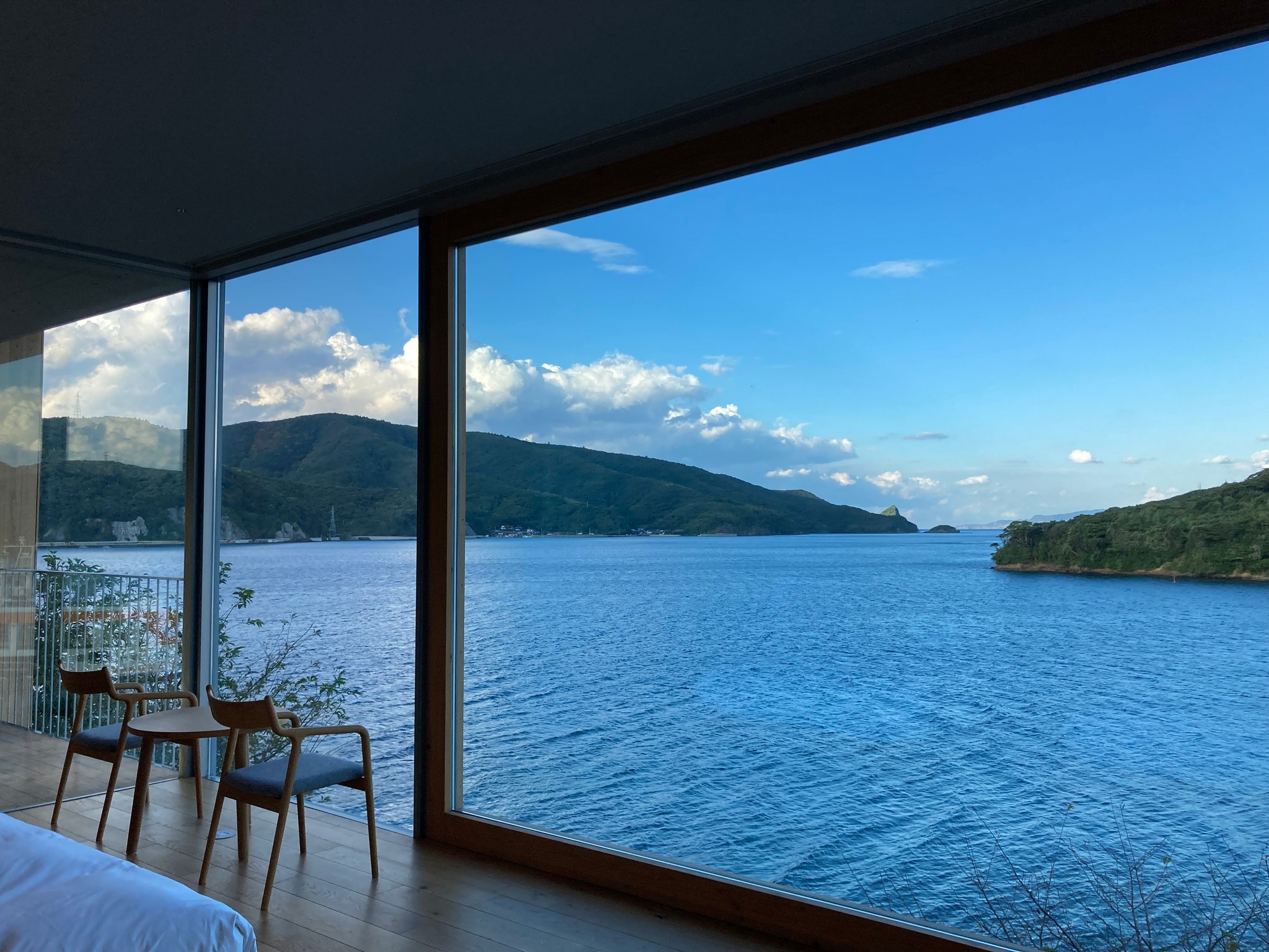 ところで、seamlessとhonestとはどういうことなのか? 筆者が宿泊した別館NEST DXでは、海に面した大きなガラス窓が、額縁のように海の景色を切り取る。ゆっくりと航行していくフェリーや漁船、ぼっかりと闇夜に浮かぶ月を見ていると、大型スクリーンで上映される映画のワンシーンのよう。
