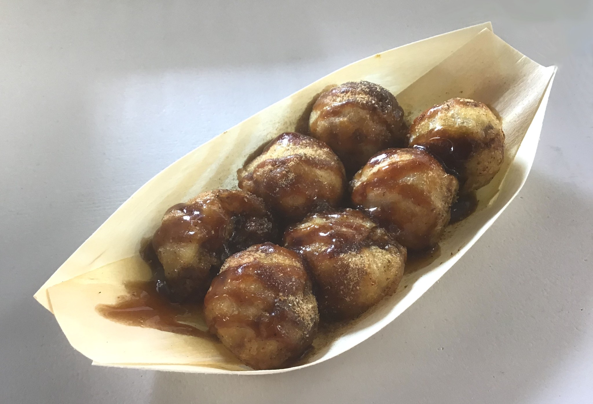 このドリンクかき氷を手がけるセイナムは、香川で16年前に誕生した「元祖かっしゃ焼」の会社。「かっしゃ焼」とは、一見たこ焼きのように見えるが、中の具は香川で「かしわ」と呼ばれる鶏肉の親鳥を入れた、つまり「かしわ焼」だ。かしわがなまって「かっしゃ」となり、「かっしゃ焼」に。フランチャイズ経営で香川、愛媛では知る人も多い、香川発祥のB級グルメだ。全国のB級グルメのコンテストなどで数々の賞も獲得している。