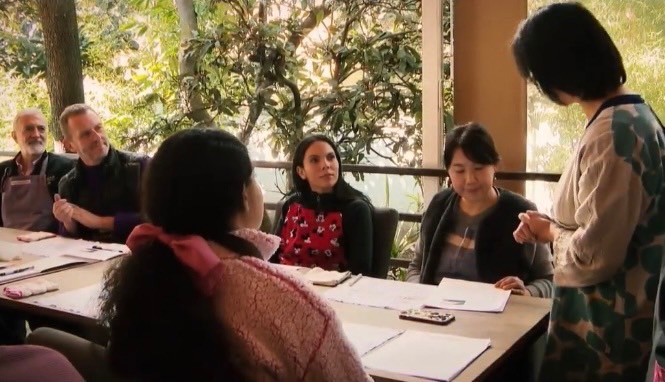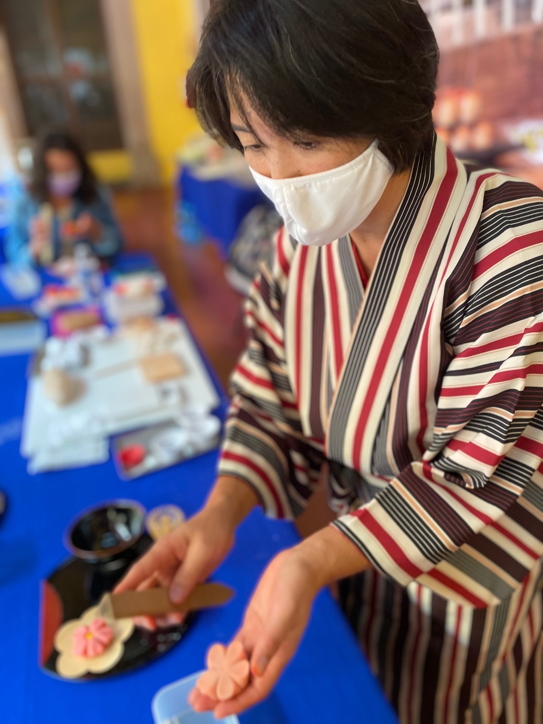 教室を開くとメキシコ人の生徒達が皆真剣に和菓子作りを学びに来る