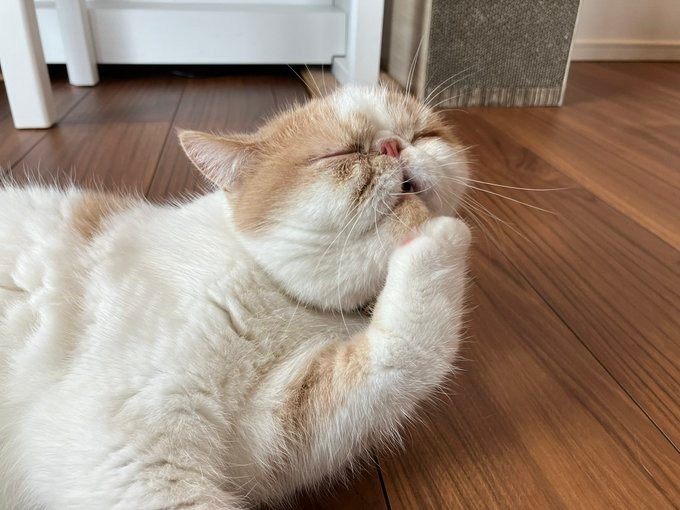 エキゾチックショートヘアは基本的に温厚だと聞きますが、本当にその通りです。噛んだり引っ掻いたりもしないし、人間にとても興味がありいつも近くにいます。他の猫にないといえば、少し他の種類より鈍臭いと思います。