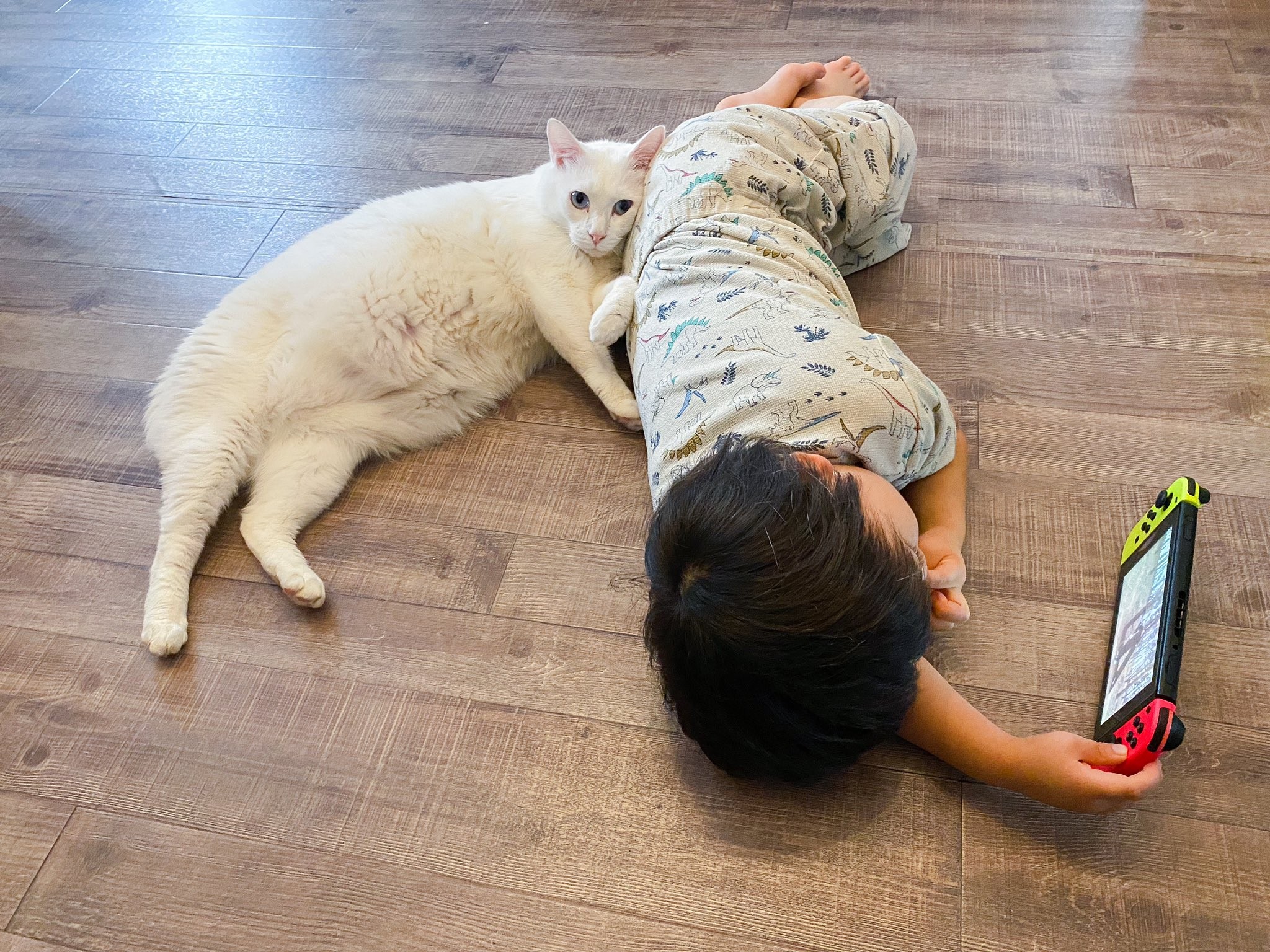 この写真を撮影したyuiiiさんによると、息子さんと白猫のブランくんのふたりはほぼ毎日一緒にゴロゴロしているそう。この日も寝落ちした息子さんに添い寝していたブランくんは、息子さんが起きるまで1時間以上は一緒に寝ていたそうです。