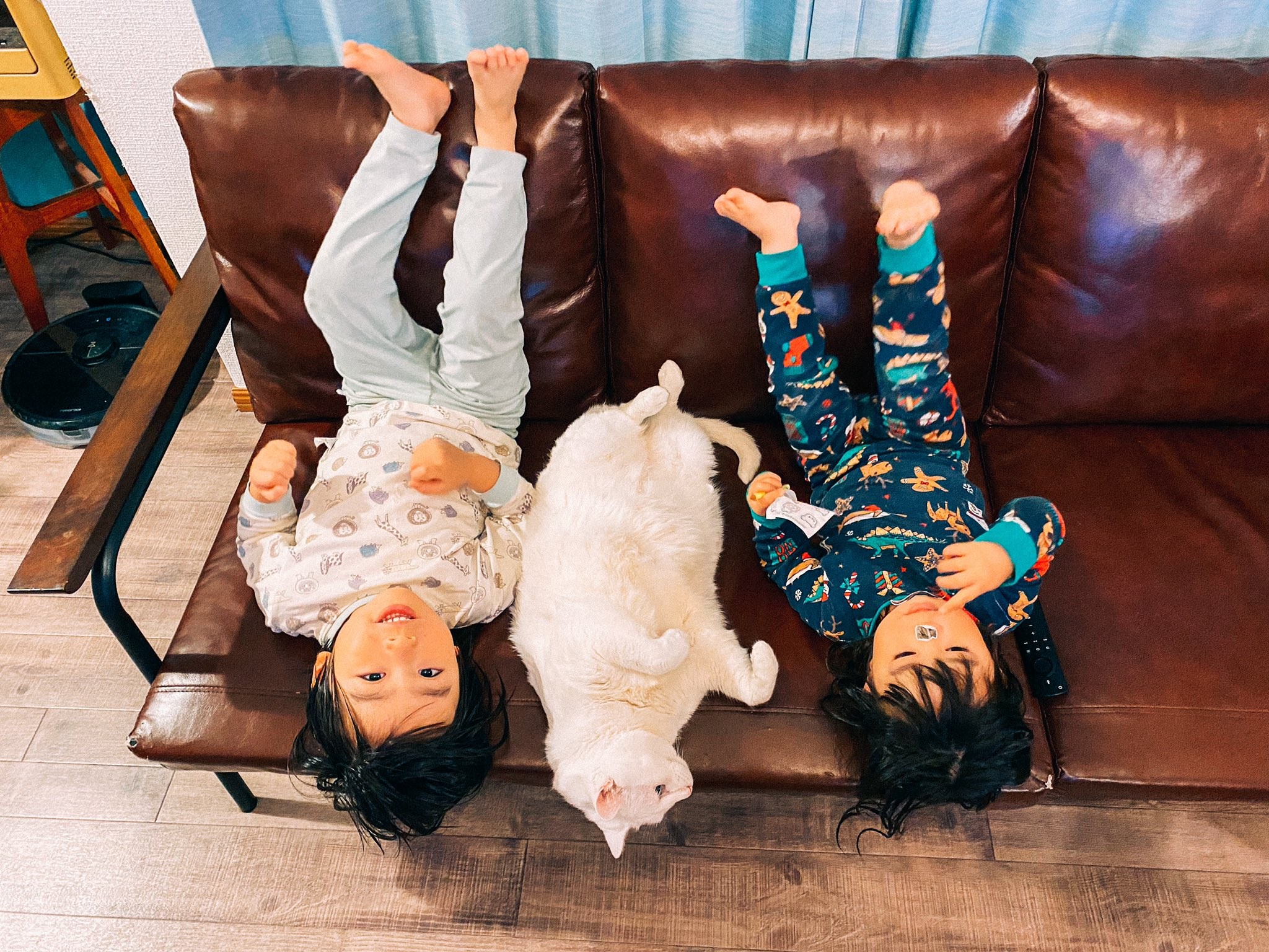 ソファでおにぎりを食べる1歳息子 しかしよく見ると…母「!?」すべてを察した母の投稿に「可愛いから許す!」「現行犯〜」
