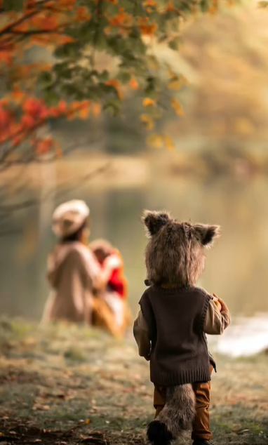 今回の小さな狼たちの写真は、時期的にハロウィンがあったので、このような写真にしたそうです。MASAYAさん、去年も同じ場所で撮影しています。「テーマは、去年は赤ずきんちゃんと狼のような感じで撮りました。息子が狼で、赤ずきんちゃんとお母さんが出会うような流れになっています。今年は、流れではありますが…狼2匹となりました」