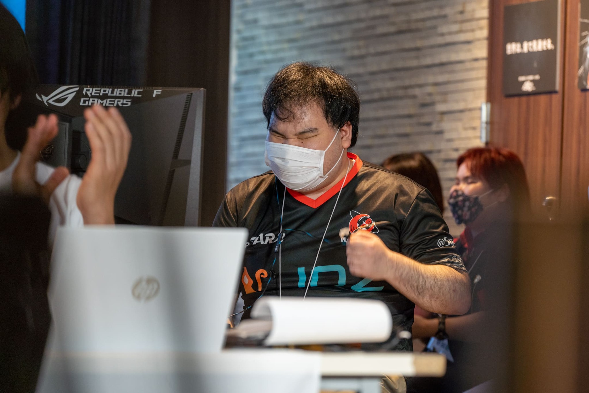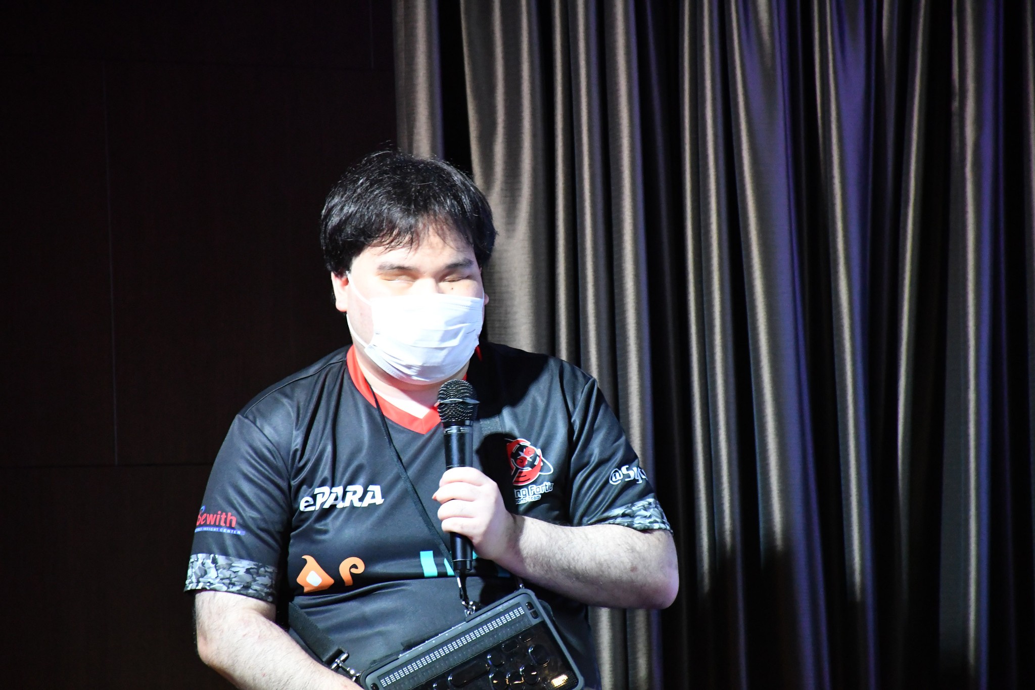 11人制eサッカースタジアム(協力川崎フロンターレ)において、コールリーダーとして応援の舵を取る様子(株式会社ePARAより提供)