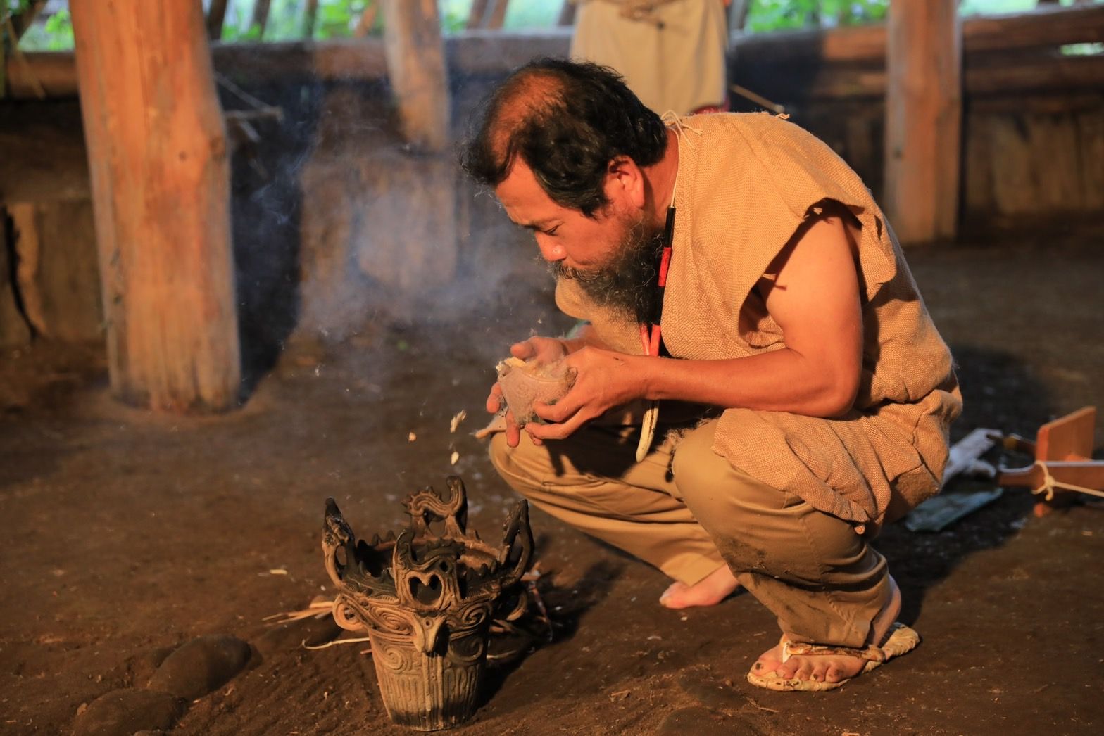 「ある時アイヌ文化と縄文文化の関連性に気づき、25歳頃から本格的に学ぼうと北海道に通うようになりました。徐々に人間関係が出来てきて、お祭りに呼んでいただいたり、アイヌ語や踊りなどを教えていただいたりするようになりました。縄文文化とアイヌ文化の連続性は、いまや学問的にも注目されつつあります。」