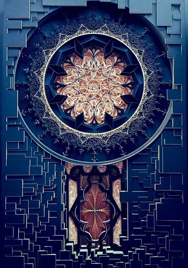 教会やヨーロッパの建築物、古代紋様や神聖幾何学やイスラム幾何学、和柄などを自分なりに織り込みながら、数の調和を気にしながら制作しています。