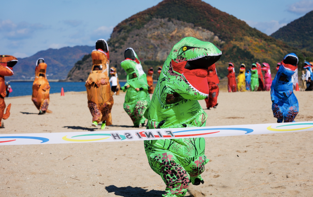 松坂さんはティラノサウルスの着ぐるみを着てストリートピアノを演奏。イベントPRの一環だ(提供)