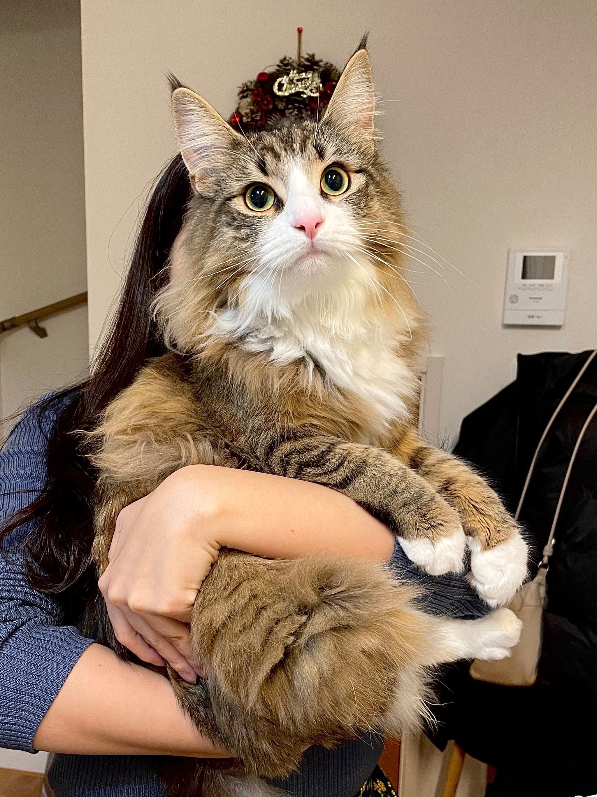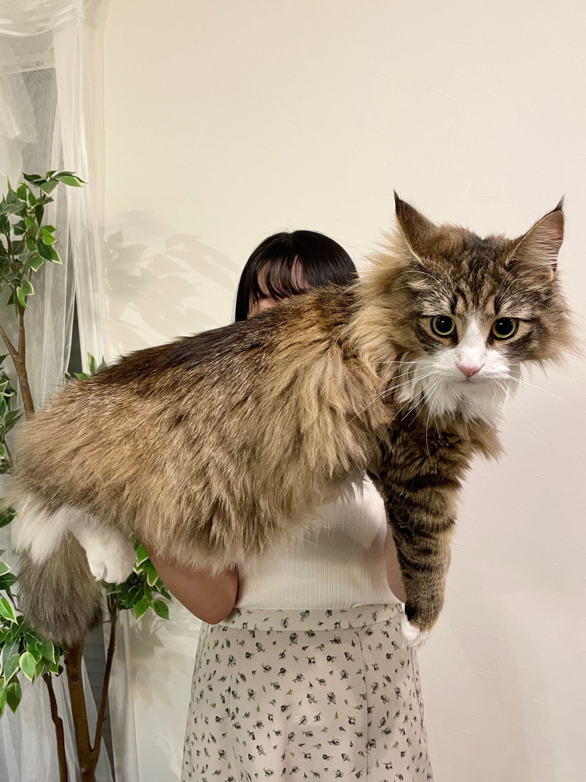 体重は2023年10月時点で7kgを超えました。体長はしっかり測れておりませんが、尻尾まで入れると1m前後はあるように思います。