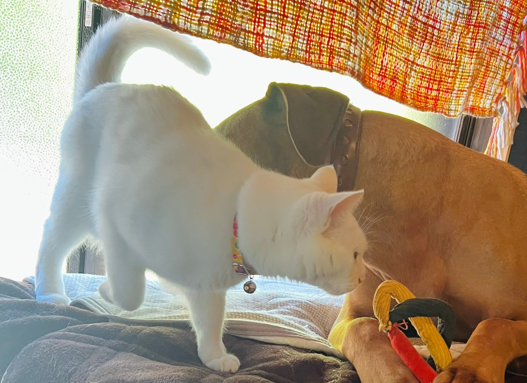 ー土佐犬と猫ちゃんが一緒に暮らしているご家庭を始めてみました!2匹はどのような関係ですか?