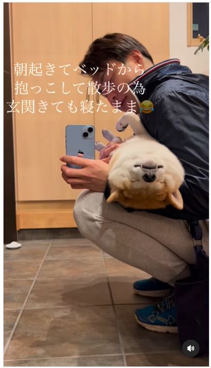 @kowakusuritagoura89さんが眠る忠太くんの動画をInstagram上に投稿すると「可愛すぎる」「ぬいぐるみみたい」「すごい信頼関係」などのコメントが寄せられ話題になっています。