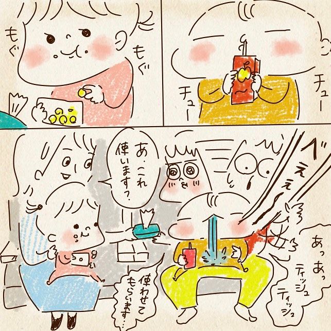 ソファでおにぎりを食べる1歳息子 しかしよく見ると…母「!?」すべてを察した母の投稿に「可愛いから許す!」「現行犯〜」