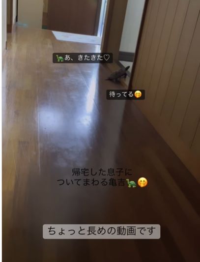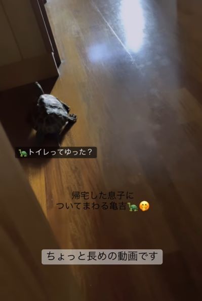 トイレの前で待つ亀吉くん(@fuyu830さんより提供)