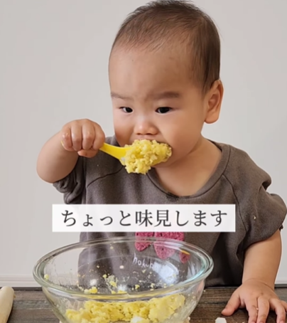 ソファでおにぎりを食べる1歳息子 しかしよく見ると…母「!?」すべてを察した母の投稿に「可愛いから許す!」「現行犯〜」