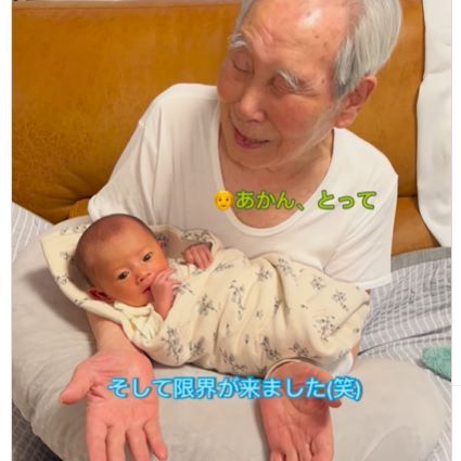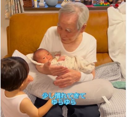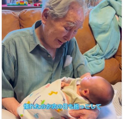 ひ孫にデレデレな80歳じいじが、抱っこすると…ひ孫の反応に「涙が出ました」「可愛くて仕方ない」