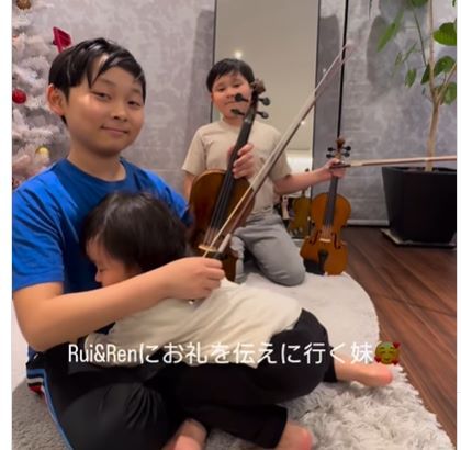とてもバイオリンが上手なRuiくんとRenくんは2歳の終わりから教室に通い始めました。妹ちゃんもお兄さんたちと同じ年ごろになったときに、バイオリンを始めたそうです。