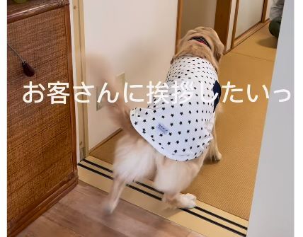 本当は、リリが和室には決して入らないお利口なところを撮影しようと思っていたのですが、お客様に挨拶したい気持ちが強すぎて「こりゃあかん!入ってしまう〜」と思いました。