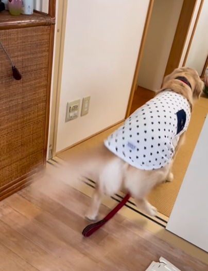 尻尾を振って和室の前をウロウロしながら、どうしても入りたいという気持ちが抑えきれないリリちゃん。