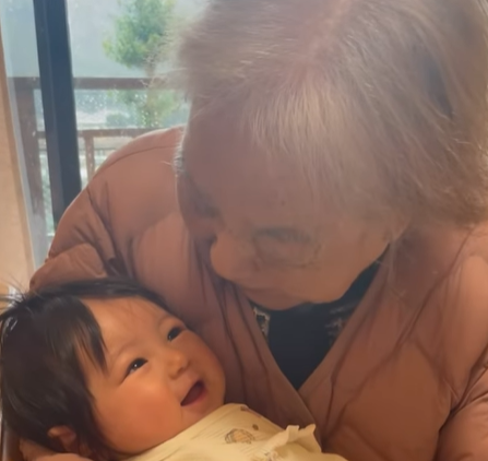 動画には、リコさんのおばあさんと、おばあさんの腕のなかにおさまるリコさんのお子さんが。
