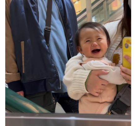 @01_ena_25さんは、Instagramで1歳のえなちゃんの成長や日常の様子などを公開しています。今回投稿されたのは、鏡が好きなえなちゃんが、エスカレーター脇の鏡を見たときの動画です。