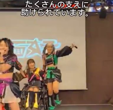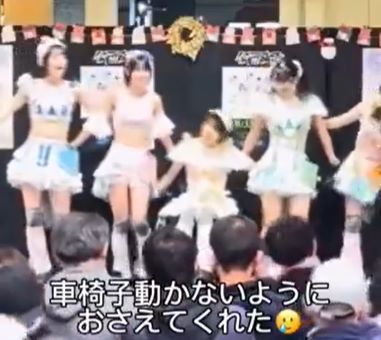 ライブ中、傾斜により車いすが下がってしまうというハプニングが起きても、メンバーが気づき支えてくれていた(@igari_tomoka3さんより提供)