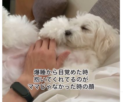 人間の赤ちゃんと同じように、抱っこされて眠るワンちゃんもいるようです。