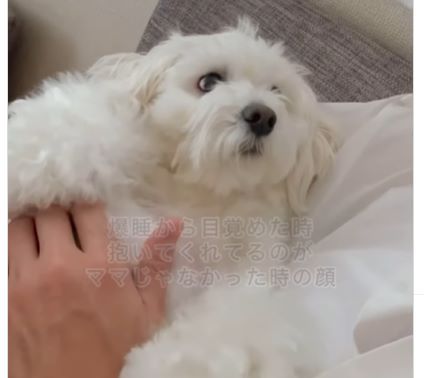 驚いた様子のくぅちゃん(@emiru87さんより提供)