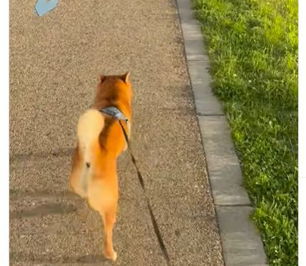 サプライズを実行する日。むぎちゃんはいつものようにお散歩をしていました。