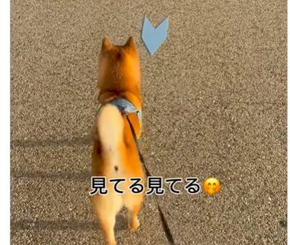 通り過ぎた後に匂いをかぐむぎちゃん(@bashiko214さんより提供)