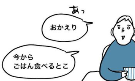 ある日マギーさんが出かけたとき、ベンジーさんとのメールで夕食をどうするかという話になりました。マギーさんはランチが遅かったためその日の夕飯は食べないと伝えると、ベンジーさんからは「僕もちょっと面倒な気分だから、簡単なもので済ませるよ」と返信がきました。