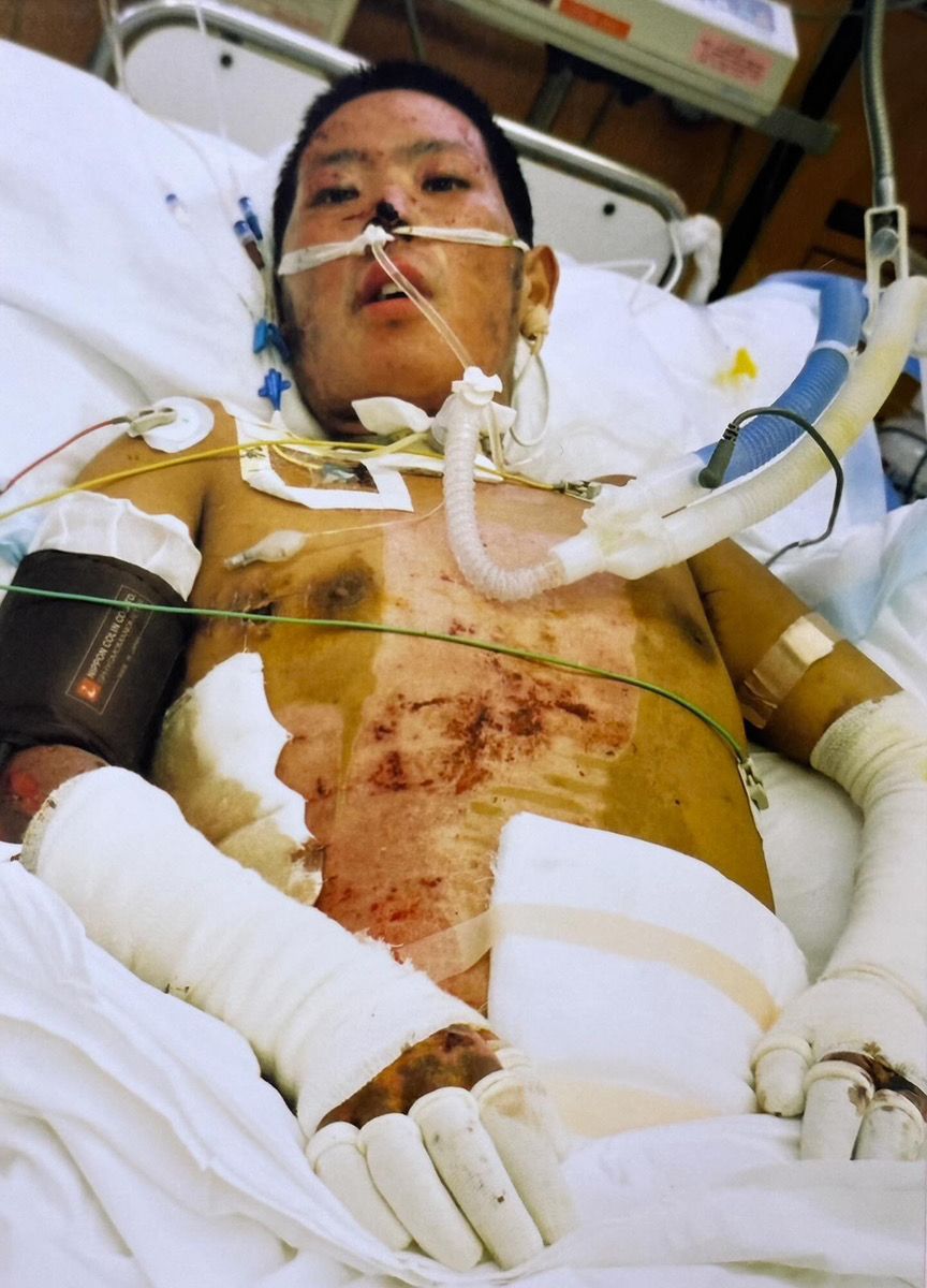 爆発事故に巻き込まれ全身の40%に大やけどを負い重体の青年。