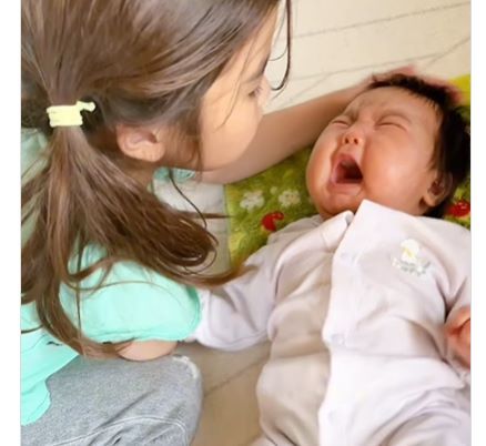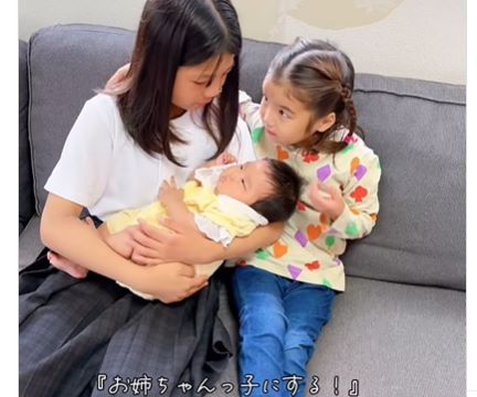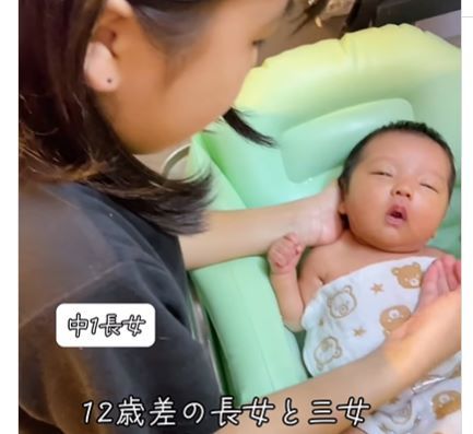 三女ちゃんの沐浴をする長女ちゃん(@ayaka.7ninno.mamaさんより提供)