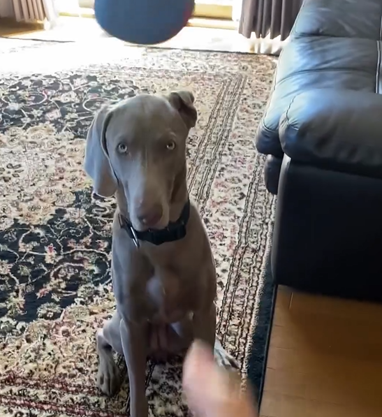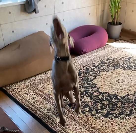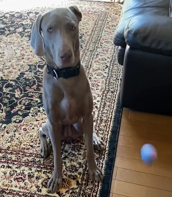 ボール遊びをしていたのは、ワイマラナーのガラちゃん。ママさんがボールを投げると、上手にキャッチ!