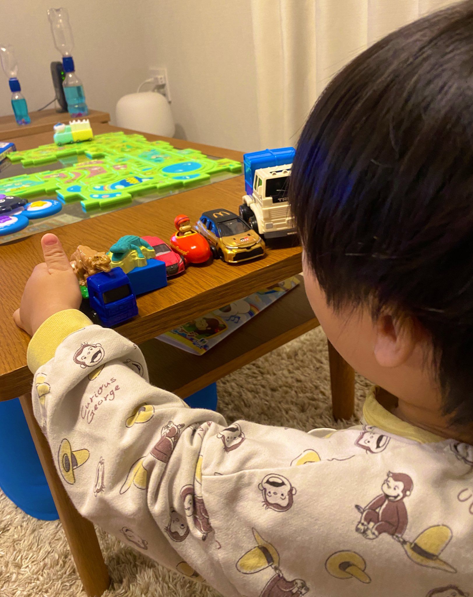 電車遊びが大好きな息子さん(@shinmaipapapapaさんより提供)