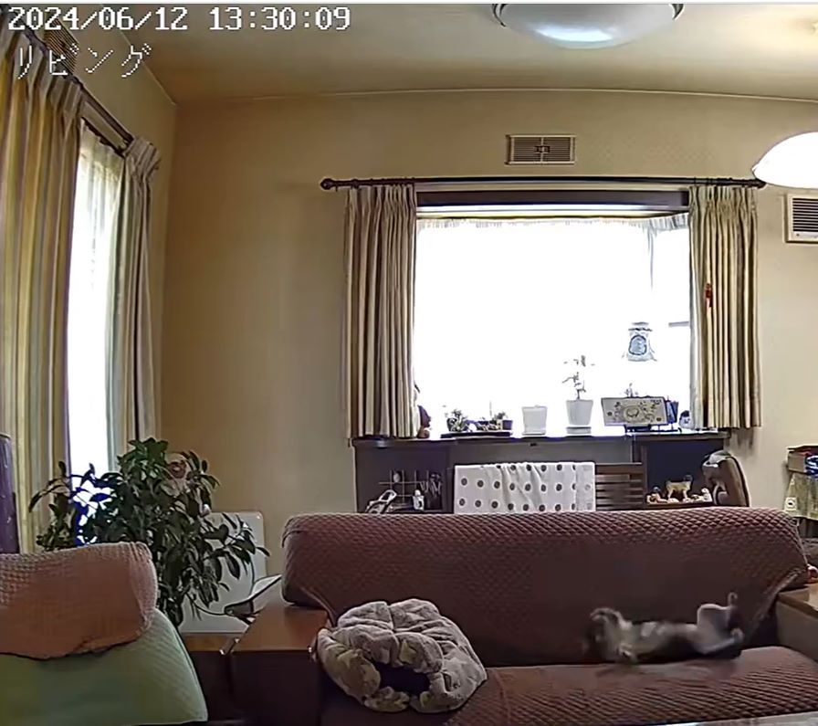 つぶしゃんの映像を見たナミスケさんは、思わず二ヤついてしまったといいます。そんなつぶしゃんの姿に「1人でもやるんだぁと思いました。また、留守番させることが多いので寂しい思いさせてるよなと感じていたんですが、結構1人を満喫してるような、のびのびソファーを独り占めしてくつろいでるので安心しました」と話していました。