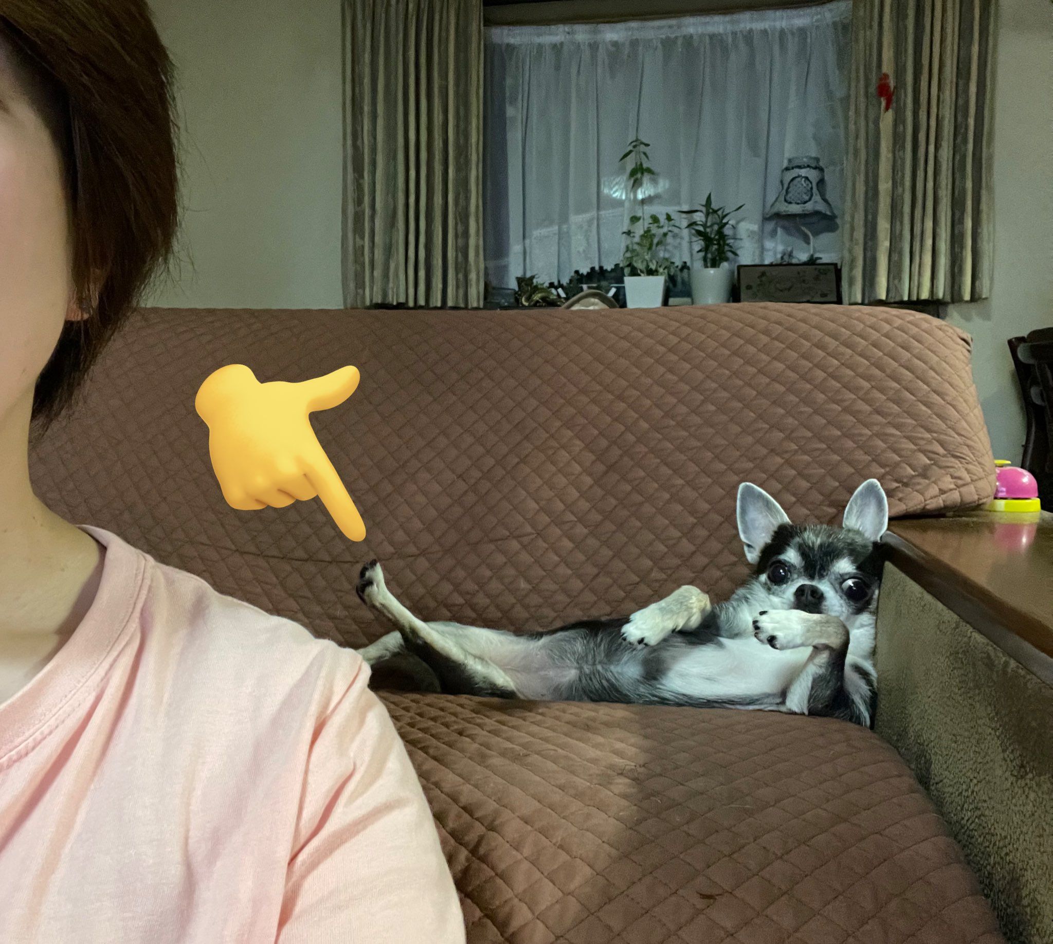 ペットカメラに映っていたのは、ソファに上がるつぶしゃんの姿。