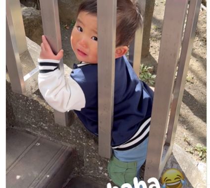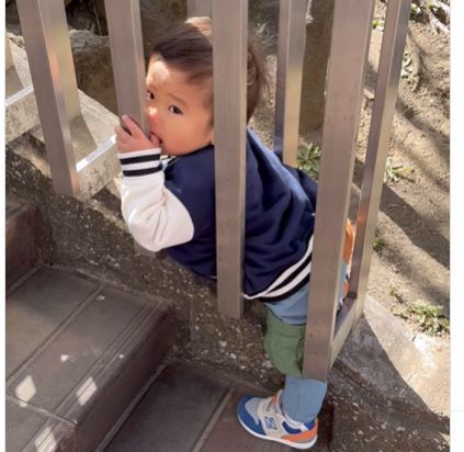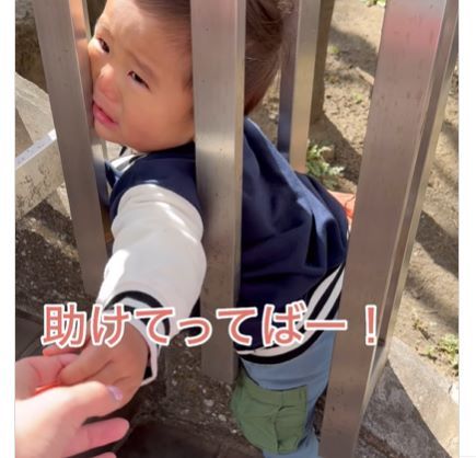 挟まってしまった息子さん(@saemi_shinahamaさんより提供)