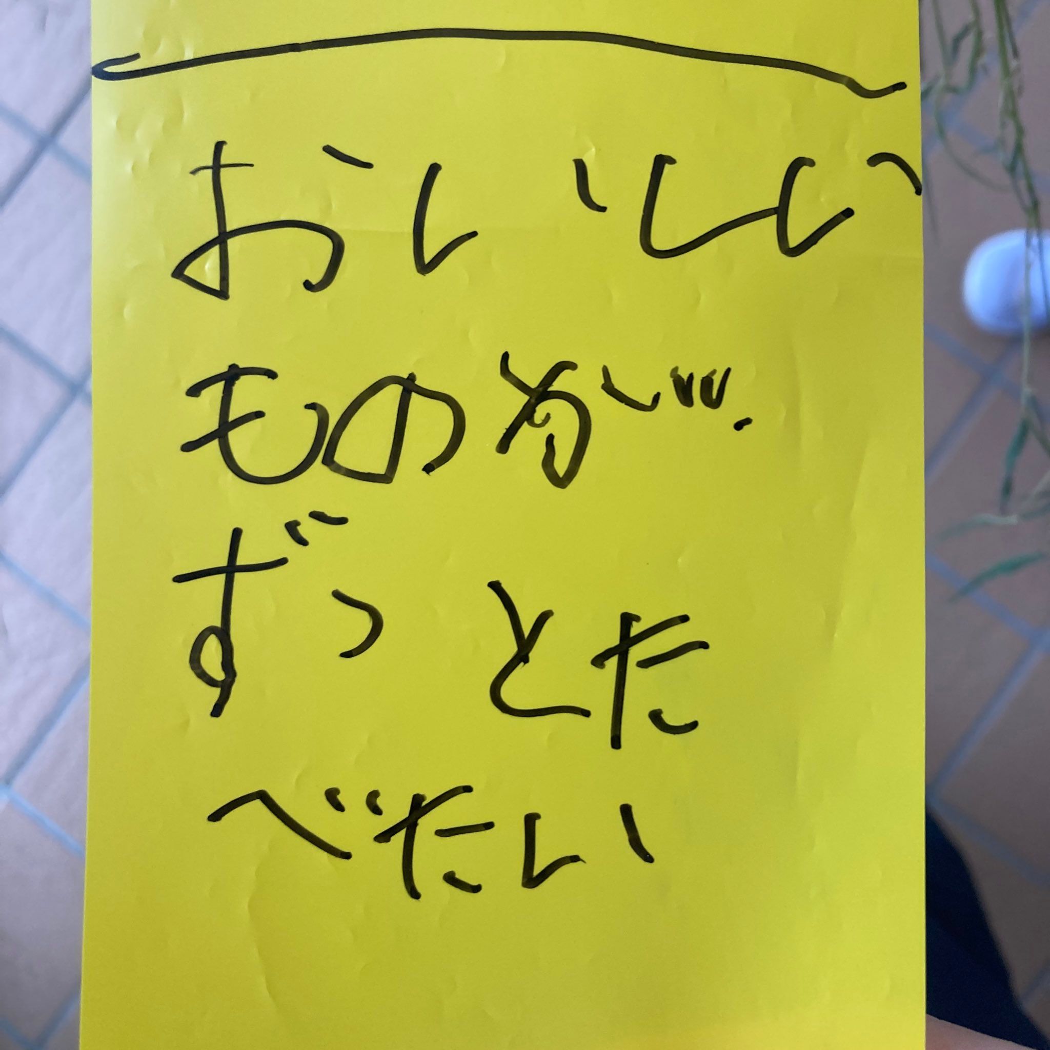 息子さんが書いた短冊には「おいしいものがずっとたべたい」と書かれています。最初にこの短冊を見たときには、めちゃくちゃ笑ってしまったという青白さん。