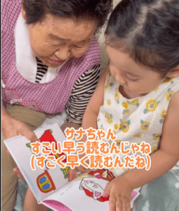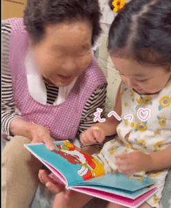 投稿ではそんなサナちゃんと、サナちゃんのひいおばあちゃんが2人で仲良く絵本を読んでいました。