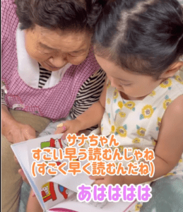 動画を撮る前に「ひいおばあちゃんは字が読めないでしょー?読んであげる」と純粋な思いでひいおばあちゃんを気づかったサナちゃん。