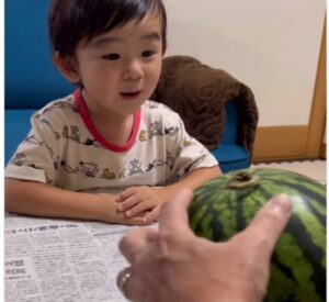 そんな息子さんを見たママさんは「スイカの中身を見て、キウイ入ってるって言ったことに、かわいくて笑ってしまいました」と話していました。