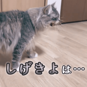 一方先住猫のしげきよくんは、警戒心MAXの様子。口を大きく開いて「シャー」と威嚇していました。
