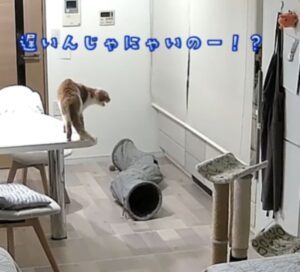 バムくんが鳴いたり動いたりすると、通知がくるように設定されているペットカメラ。ある日の20時頃、仕事で外出していた@baumkuchen_cat.bamさんは、通知がきたたため、すぐにカメラを確認しました。