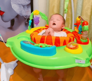 当時、生後5ヶ月の娘さんが「ジャンパルー」というおもちゃでジャンプして遊んでいたときのことでした。