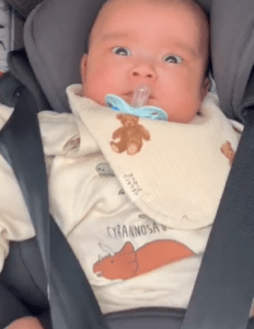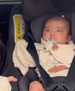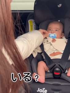 普段からチャイルドシートが苦手なのか、チャイルドシートに乗り降りさせられると少し睨みつけるような表情を取る赤ちゃん。