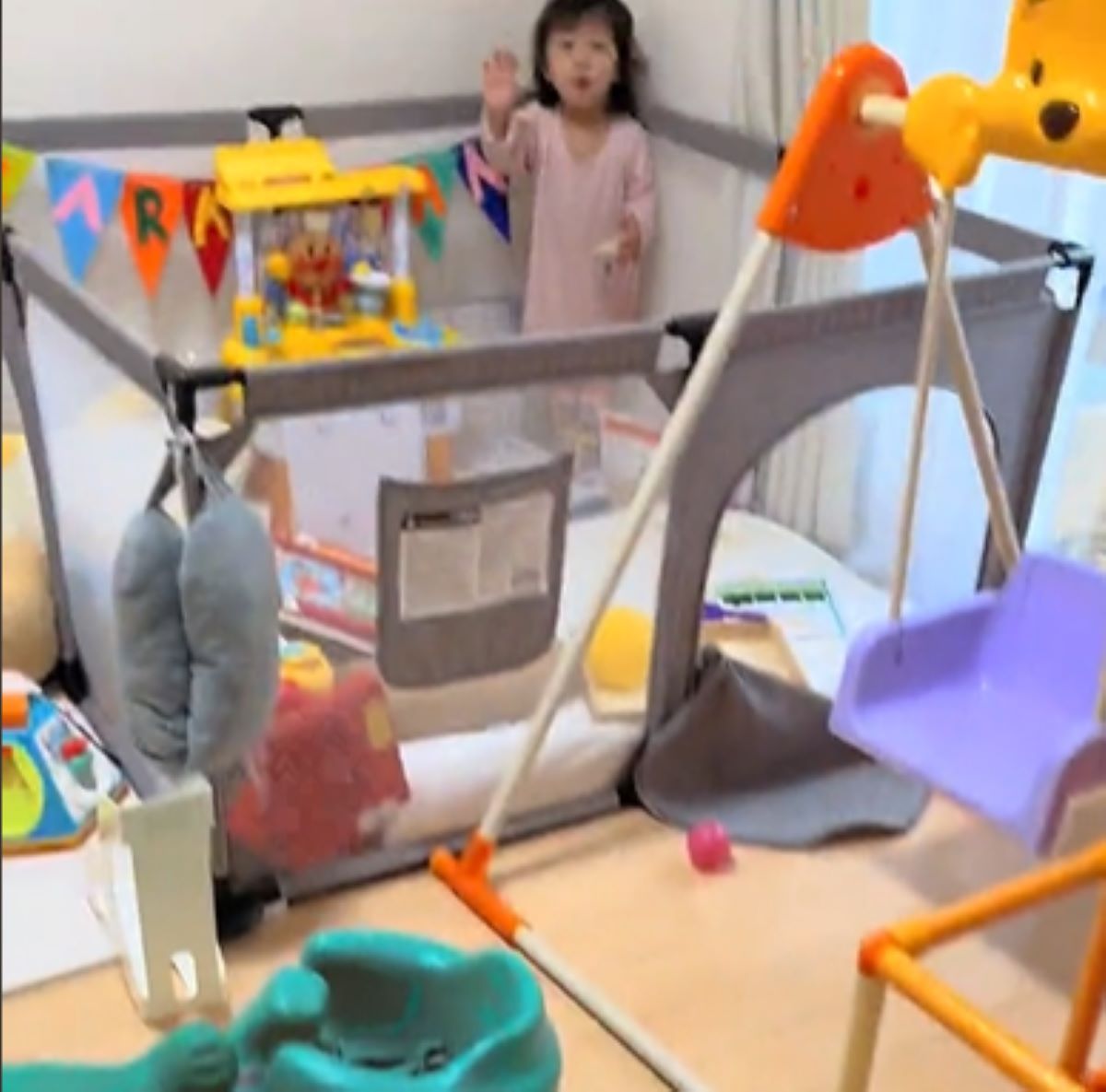 ベビーサークルの中に居たお子さんは、片手にお皿のようなおもちゃを持っています。そして、そのお皿のようなおもちゃには、あげた覚えのないオートミールが大量に入っていたのです。オートミールを食べる様子を見たママさんは、心の中で笑ってしまったといいます。